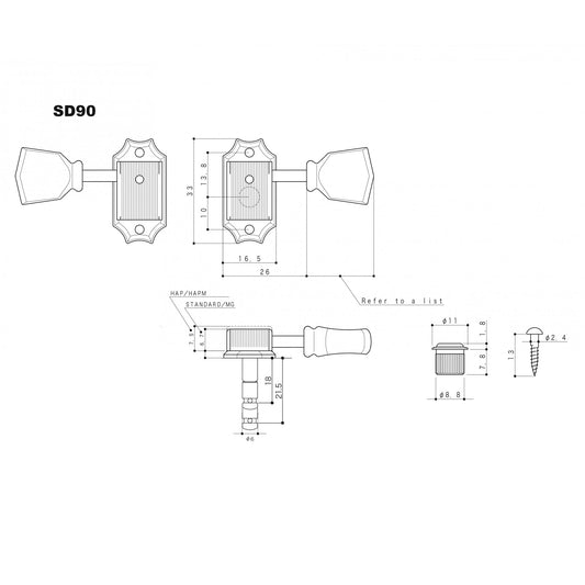 SD91 Height Adjustable Post and Locking Tuning Machines 6 In Line Vintage Style SKU:Code:SD91-05MNHAPM