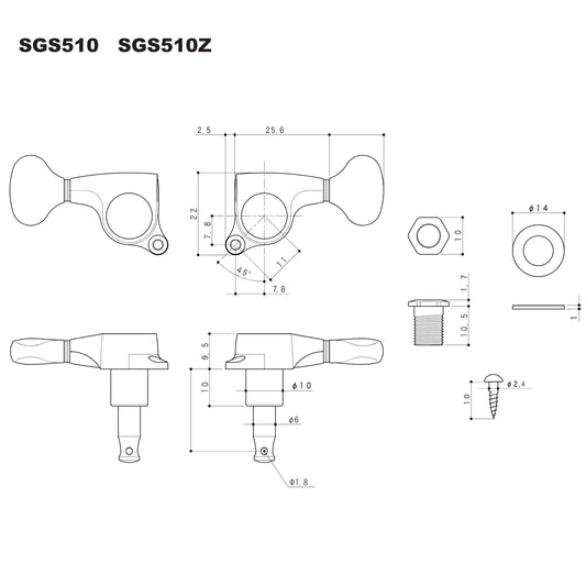 SGS510Z Magnum Lock 6 in Line Traditional Locking Tuning Machines 18:1 Ratio SKU:Code:SGS510Z-S5CLMG-T