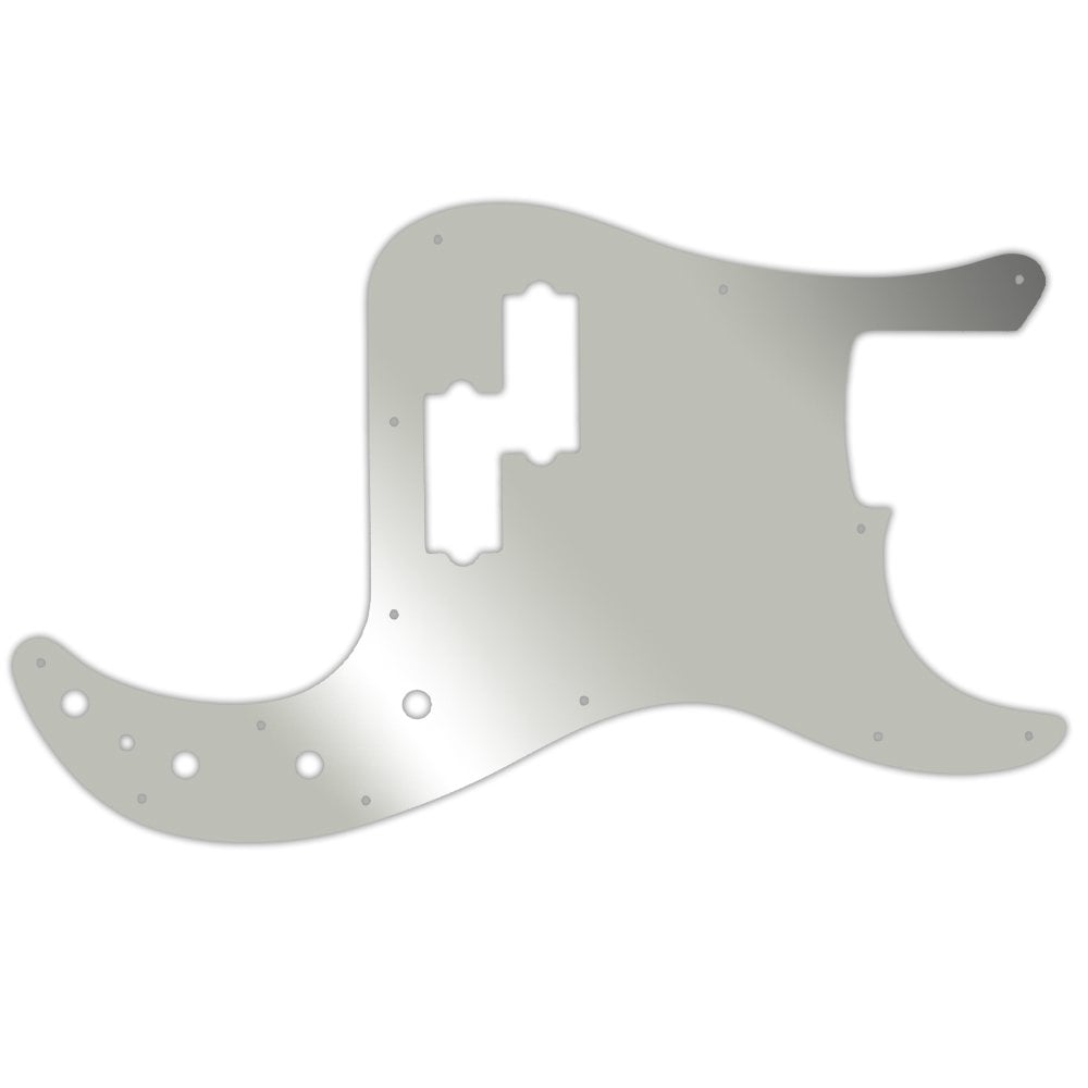 This pickguard is made from silver mirror - a clear acrylic material measuring .118" / 2.99mm thick with a 45 degree bevelled edge. The silver reflective layer is attached to the underside of the acrylic, preventing it from getting scratched or dented once it is fitted to the instrument.