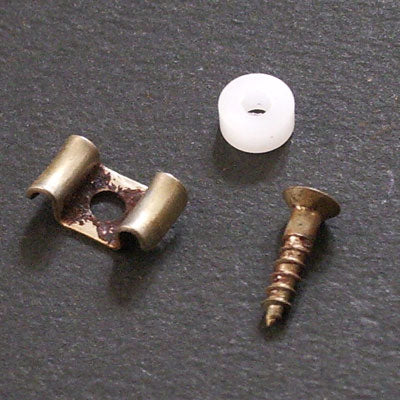 Relic "butterfly" string retainer with screw and derlin spacer.