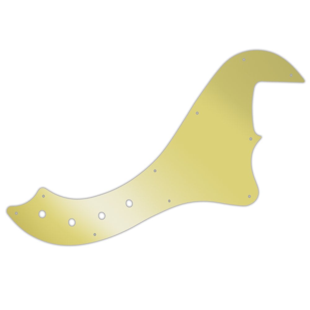 This pickguard is made from gold mirror - a clear acrylic material measuring .118" / 2.99mm thick with a 45 degree bevelled edge. The gold reflective layer is attached to the underside of the acrylic, preventing it from getting scratched or dented once it is fitted to the instrument.