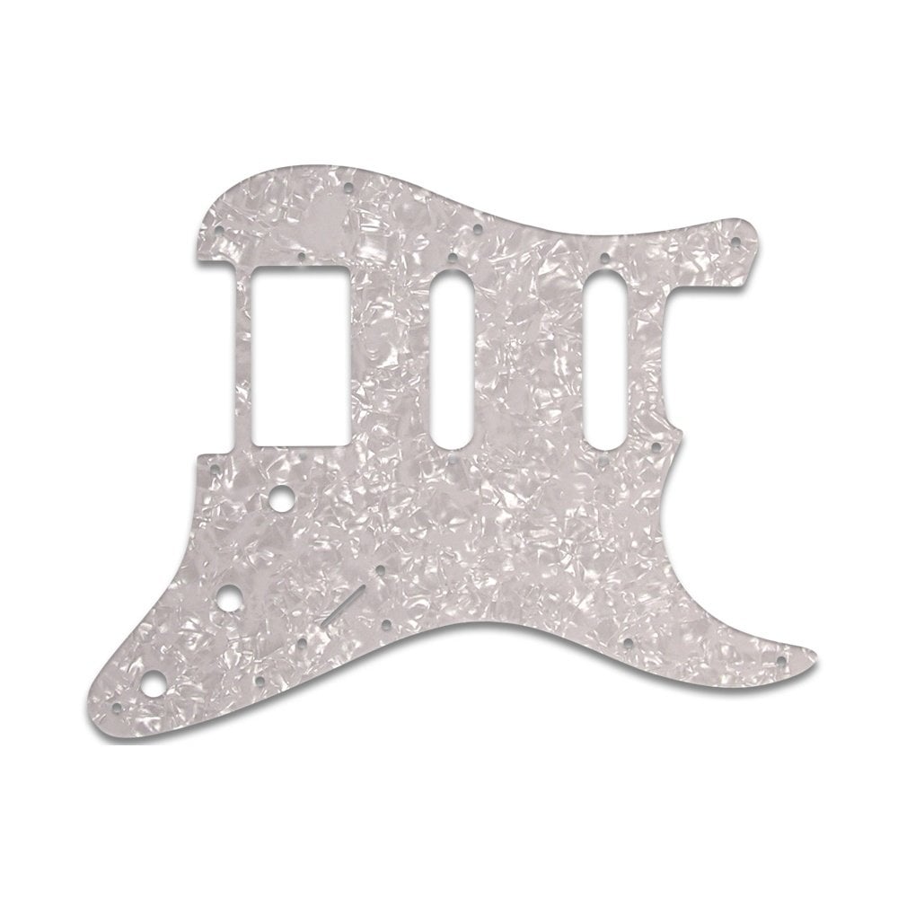 This replacement Fender Strat H/S/S pickguard's mounting hole pattern will only fit genuine Fender U.S.A (post 1963) or Fender made in Mexico (post 2002) Stratocasters with two single coils in the neck and middle position, and a standard humbucker in the bridge position located 3/8 inches from the bridge cutout. It will not fit Squier or any Fender production instruments from Korea, Japan, Indonesia or China manufacturing facilities. This pickguard was designed in the 1970's when many players were removing the bridge single coil pickup and routing the body to install a humbucker in the bridge position. This uses the same mounting hole pattern as current Fender Stratocaster guitars but is not a current Fender Stratocaster production guard. For current Fender production of H-S-S pickup pattern see the STL-200 series pickguard template.