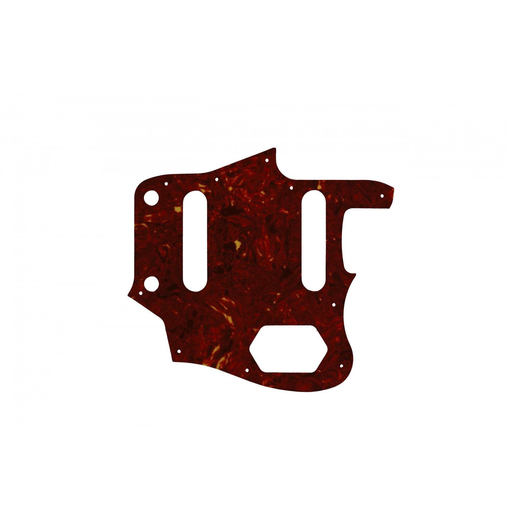 This pickguard is designed to fit a American Professional Jaguar model only. Light brown tortoiseshell (with a hint more red to the overall colour compared to the dark brown tortoiseshell that we sell) celluloid top layer with a PVC White / Black / White laminate underneath. Comes with a peel-off clear protective film attached to top side to protect the surface during cutting and installation. We are unable to accept returns if this clear film has been removed.