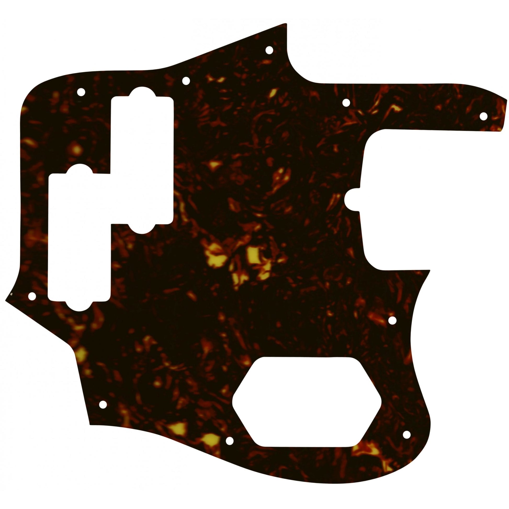 This pickguard is designed to fit a American Standard Jaguar Bass model only. Dark brown tortoiseshell celluloid top layer with a PVC White / Black / White laminate underneath. Comes with a peel-off clear protective film attached to top side to protect the surface during cutting and installation. We are unable to accept returns if this clear film has been removed.Ê