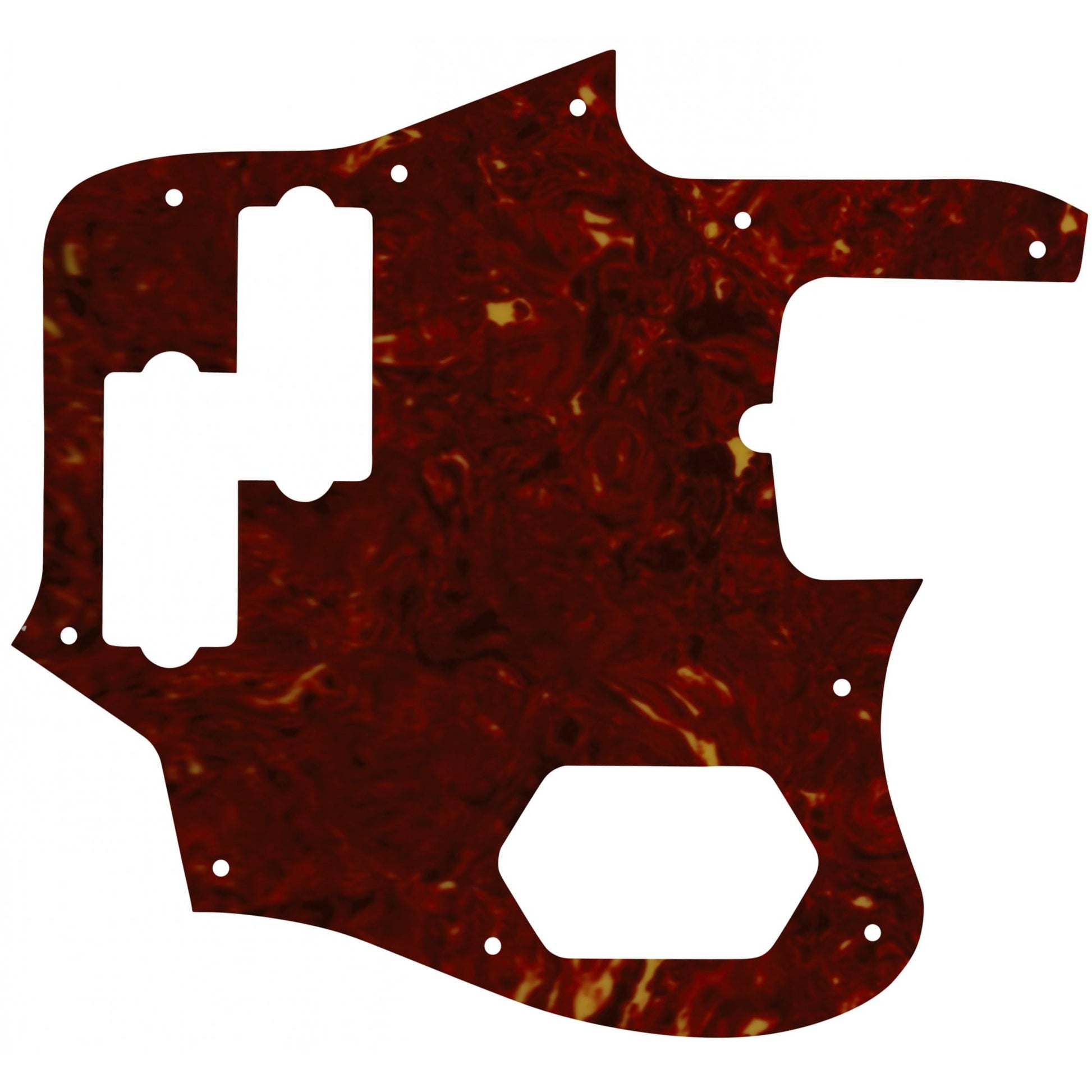 This pickguard is designed to fit a American Standard Jaguar Bass model only. Light brown tortoiseshell (with a hint more red to the overall colour compared to the dark brown tortoiseshell that we sell) celluloid top layer with a PVC White / Black / White laminate underneath. Comes with a peel-off clear protective film attached to top side to protect the surface during cutting and installation. We are unable to accept returns if this clear film has been removed.