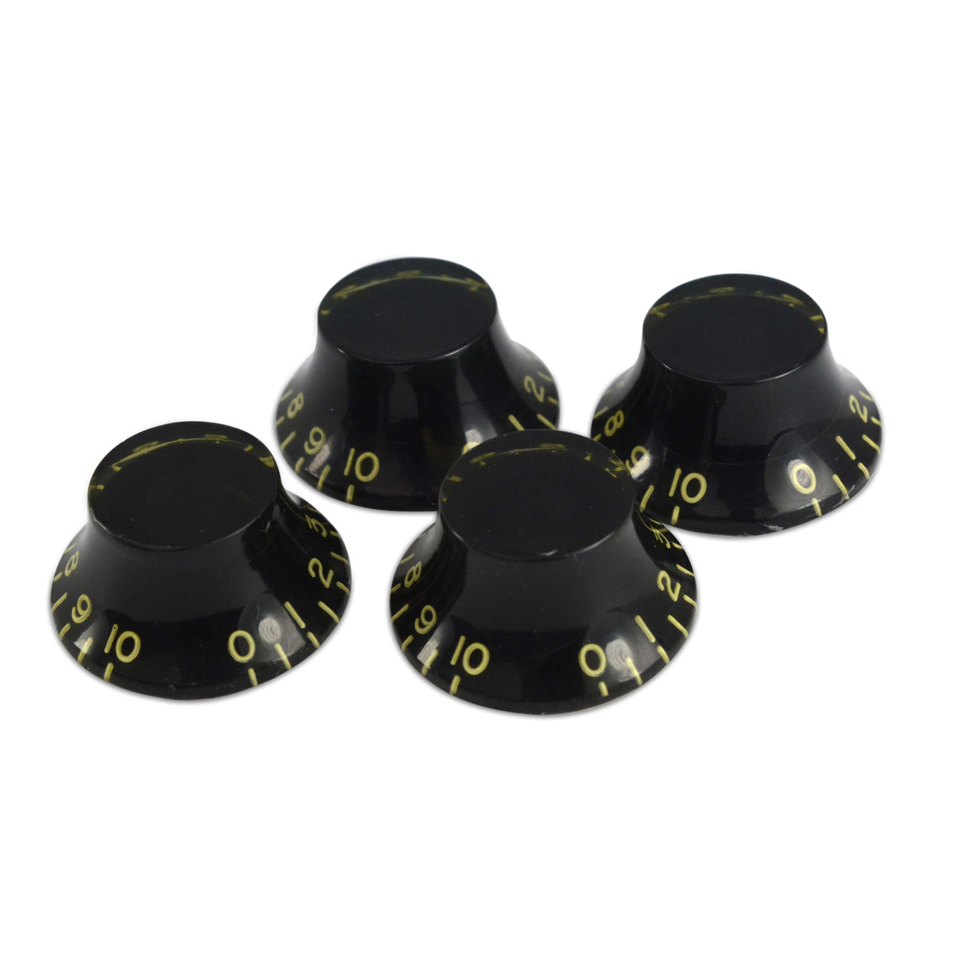 Bell Knob (Set of 4) Relic Black, CAB Material, Embossed Off-White Numbers, USA fit and CTS pots