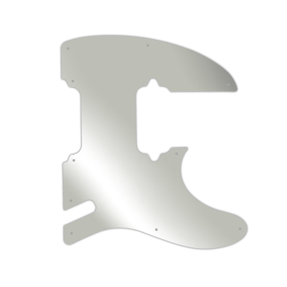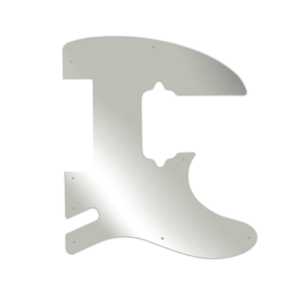 This pickguard is made from silver mirror - a clear acrylic material measuring .118" / 2.99mm thick with a 45 degree bevelled edge. The silver reflective layer is attached to the underside of the acrylic, preventing it from getting scratched or dented once it is fitted to the instrument.