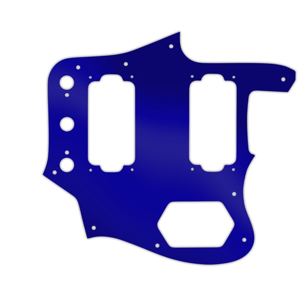 Featuring all the styling and functionality of a vintage Jaguar hotrodded with two Dragster humbuckers and Adjusto-Matic bridge with anchored tailpiece, the Fender Special Edition Jaguar HH replacement pickguards that we offer allow for a greater degree of personalisation and customisation. Dark blue mirror is a clear acrylic material with a dark blue mirror layer applied to the underside of the material. It is 2.99mm thick and comes with a 45 degree bevelled edge as standard.