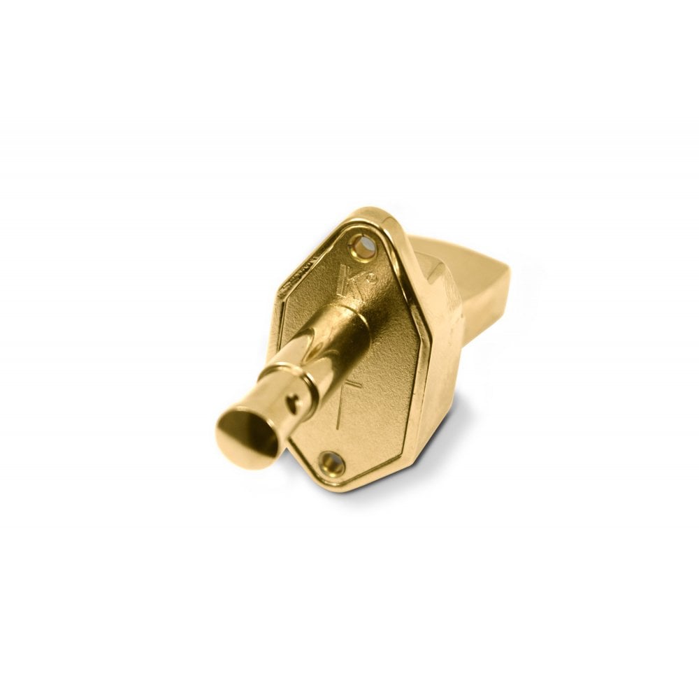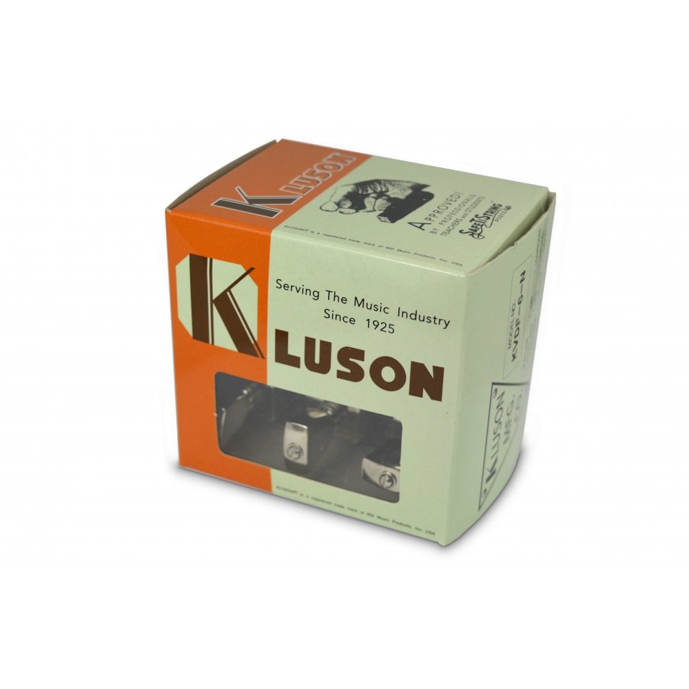 After more than 40 years, Kluson has just reissued the Firebird/Banjo tuners in all their original glory! Kluson stayed true to the design in virtually every aspect using planetary gears with the 12:1 ratio (wind rate = to 14.6:1 ratio), the exact mounting screw pattern, housing size and appearance with the 5/16 inch string post. Because these tuners have a larger string post the tuners do require the original larger peg hole which is very similar in size to what is used for modern die-cast tuners. The “T” and “B” on the bottom plates depict treble or bass side and are only visible when tuning machine is not installed. Kluson Firebird/banjo tuners are available in gold, nickel and chrome plating in sets of 6 in line as listed here, 2 + 2 sets for banjo and bass and individually.