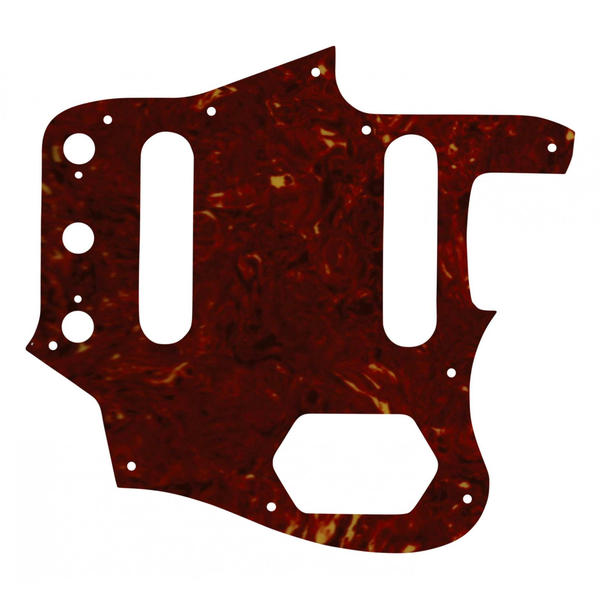 This replacement Jaguar pickguard will only fit original USA-made Jaguar guitars between 1962 to 1975. Light brown tortoiseshell (with a hint more red to the overall colour compared to the dark brown tortoiseshell that we sell) celluloid top layer with a PVC White / Black / White laminate underneath. Comes with a peel-off clear protective film attached to top side to protect the surface during cutting and installation. We are unable to accept returns if this clear film has been removed.