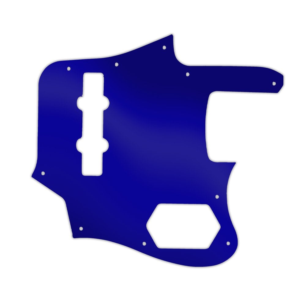 This pickguard is made from blue mirror - a clear acrylic material measuring .118" / 2.99mm thick with a 45 degree bevelled edge. The blue reflective layer is attached to the underside of the acrylic, preventing it from getting scratched or dented once it is fitted to the instrument.