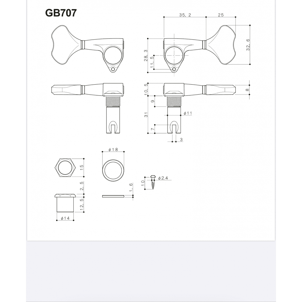 Gotoh's GB707 Bass machineheads 2 aside (2 left and 2 right) sold as a set of 4. Held on with one screw per tuner, the bushes, washers and screws are all included.