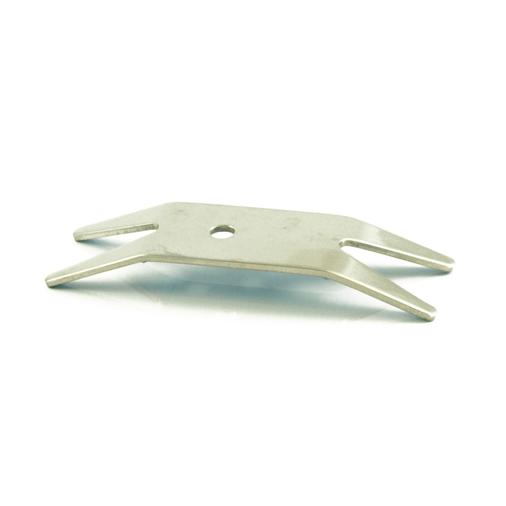 Store this versatile little steel wrench in your guitar case and you can quickly fix a loose output jack, control pot, pickup switch or tuning machine. Turn adjustable ABR-1 bridge thumbwheels more easily, too. One end of the Multi the tool can fit under a control knob and is specially angled for clearance over a guitar body or peghead. The ESP multi spanner is toothed for loosening a nut; the other end tightens it. A mere .075 (1.90mm) thin.