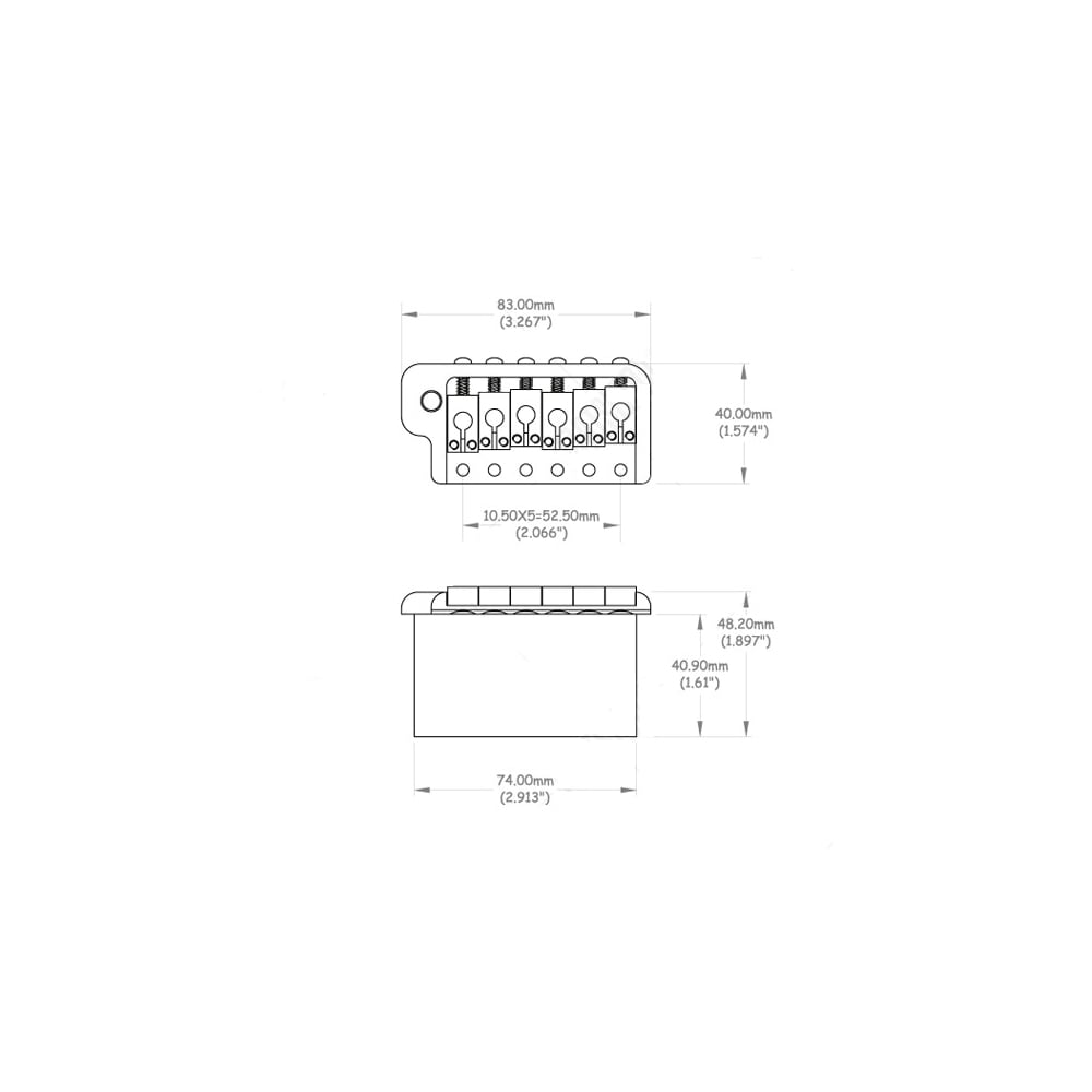 String Pitch (spacing) = 2 1/16 in. (52mm)