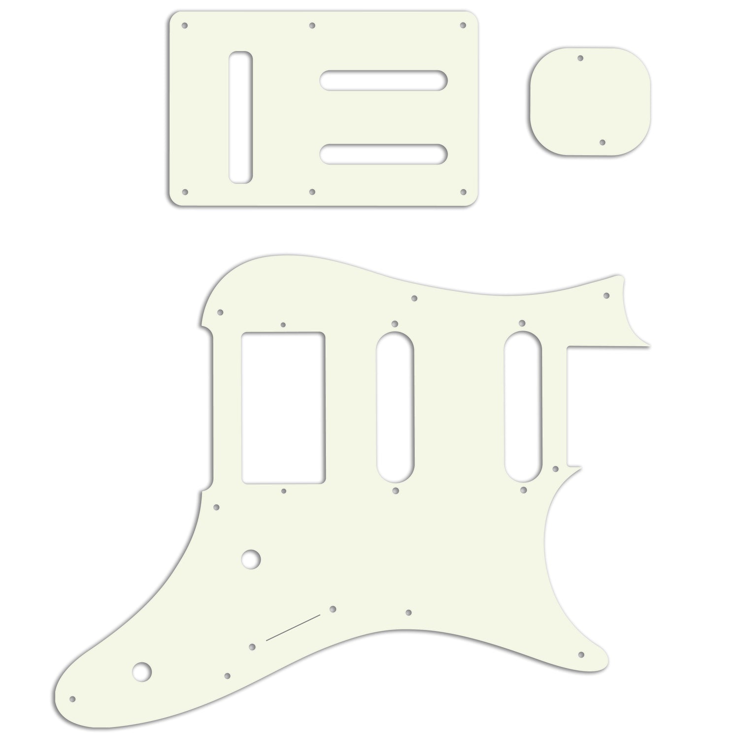 Replacement pickguard and backplates for the Ibanez Prestige AZ2204 model. Choose either the pickguard only or a complete set with the pickguard and two backplates, allowing you to match all three plastic parts with the same material.