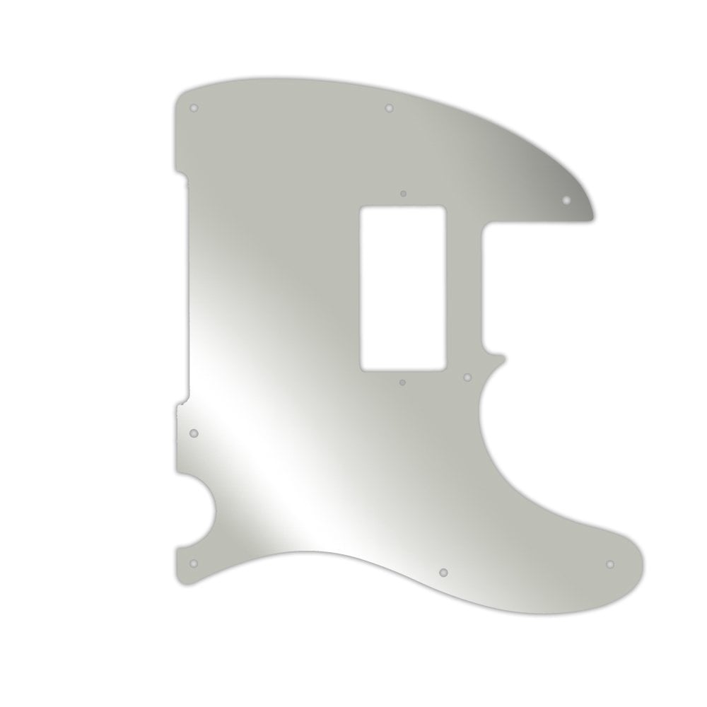 This pickguard is made from silver mirror - a clear acrylic material measuring .118" / 2.99mm thick with a 45 degree bevelled edge. The silver reflective layer is attached to the underside of the acrylic, preventing it from getting scratched or dented once it is fitted to the instrument.