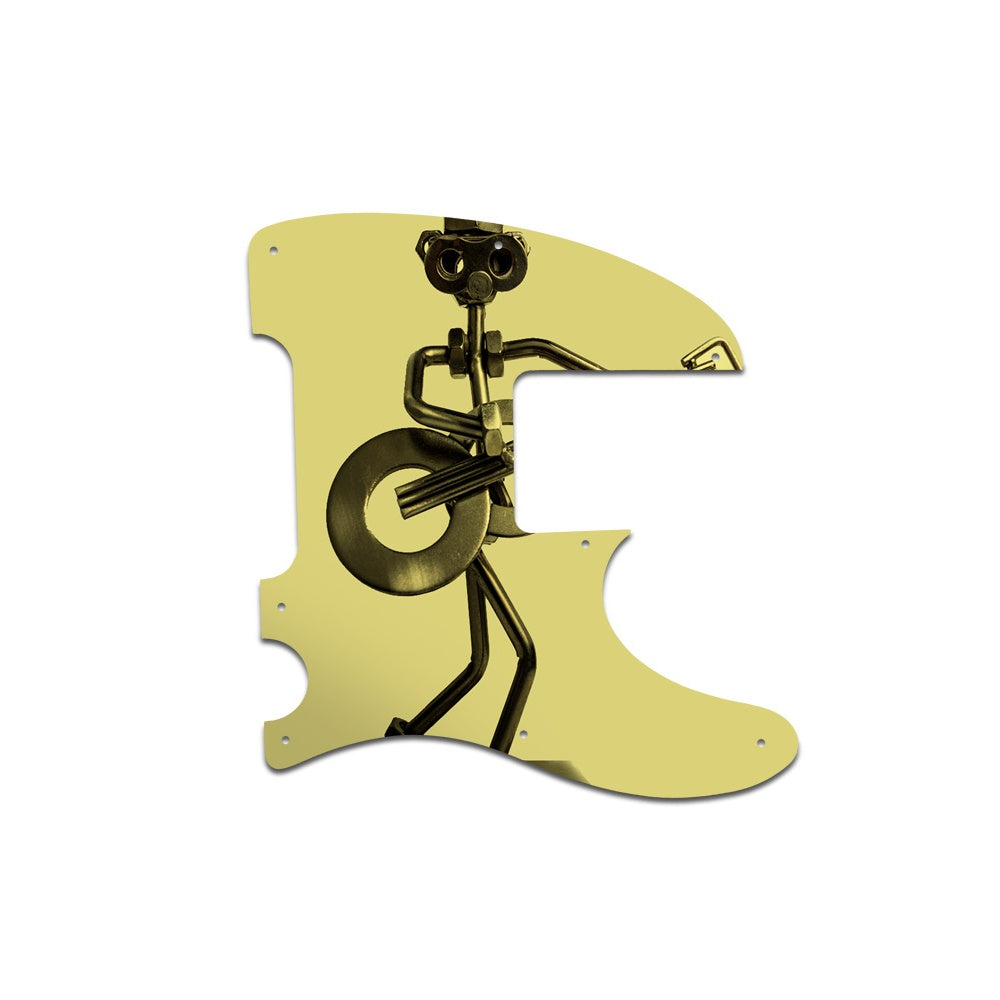 This pickguard is made from gold mirror - a clear acrylic material measuring .118" / 2.99mm thick with a 45 degree bevelled edge. The gold reflective layer is attached to the underside of the acrylic, preventing it from getting scratched or dented once it is fitted to the instrument.