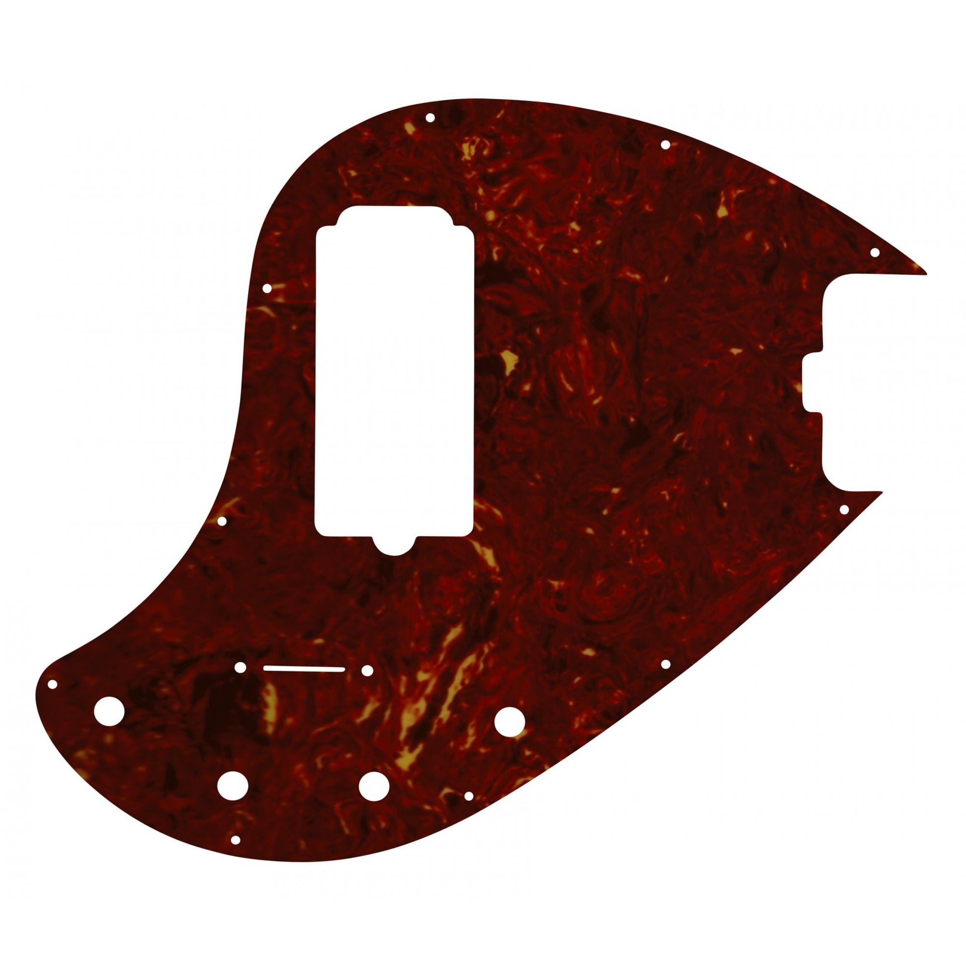 This pickguard template is specifically for the newer model of 5 string Ernie Ball Music Man bass. To identify the correct pickguard for your bass, this newer model has a rectangular pickup slot with an extra cutout section for the pickup adjustment screw tabs as well as having a straight selector switch placement. If you need a 5 string Stingray pickguard without the pickup mounting tab cutout and angled selector switch placement, please see the STGB-5300 old-style template. Light brown tortoiseshell (with a hint more red to the overall colour compared to the dark brown tortoiseshell that we sell) celluloid top layer with a PVC White / Black / White laminate underneath. Comes with a peel-off clear protective film attached to top side to protect the surface during cutting and installation. We are unable to accept returns if this clear film has been removed.