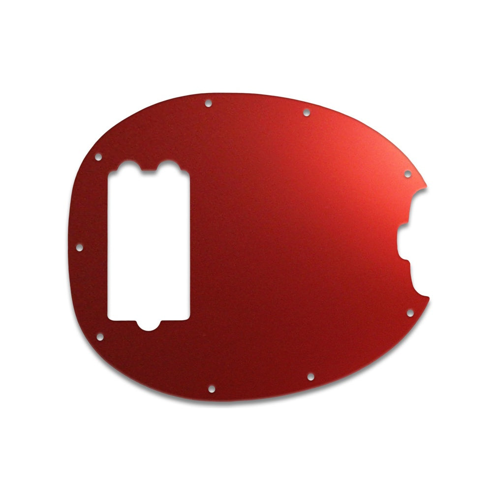 This pickguard is made from red mirror - a clear acrylic material measuring .118" / 2.99mm thick with a 45 degree bevelled edge. The red reflective layer is attached to the underside of the acrylic, preventing it from getting scratched or dented once it is fitted to the instrument.