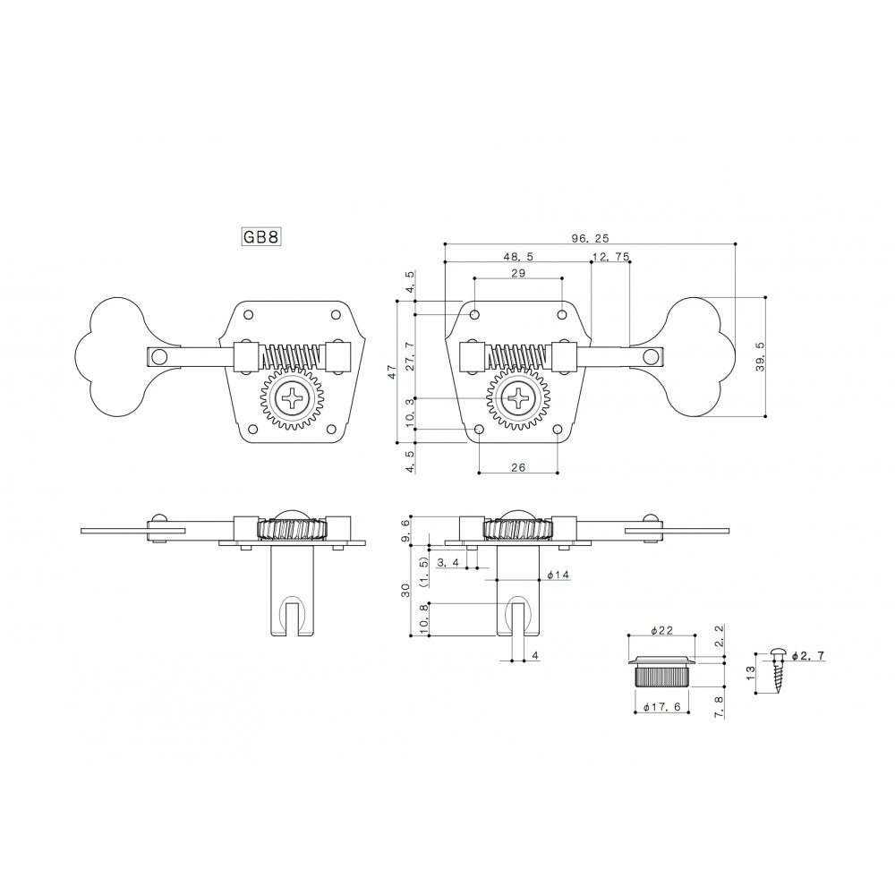 Please note that being 100% vintage correct, these tuners have two small lugs that protrude from the rear of the mounting plate that can cause the tuner to not sit flat against the headstock, just like you would find on an original Fender bass. In 1964 Fender started to put small recesses in the back of the headstock so that the tuners would sit flush on the bass. We recommend undertaking a similar procedure when fitting these bass tuners to your headstock if your bass doesn't already have the recesses.