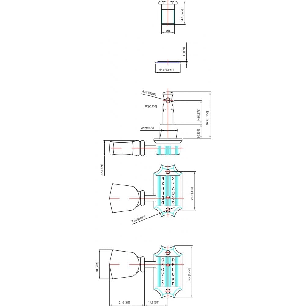 To ensure a hassle-free installation, the Grover 135 Series machine heads come complete with screw fit hex bushes, washers, and screws.