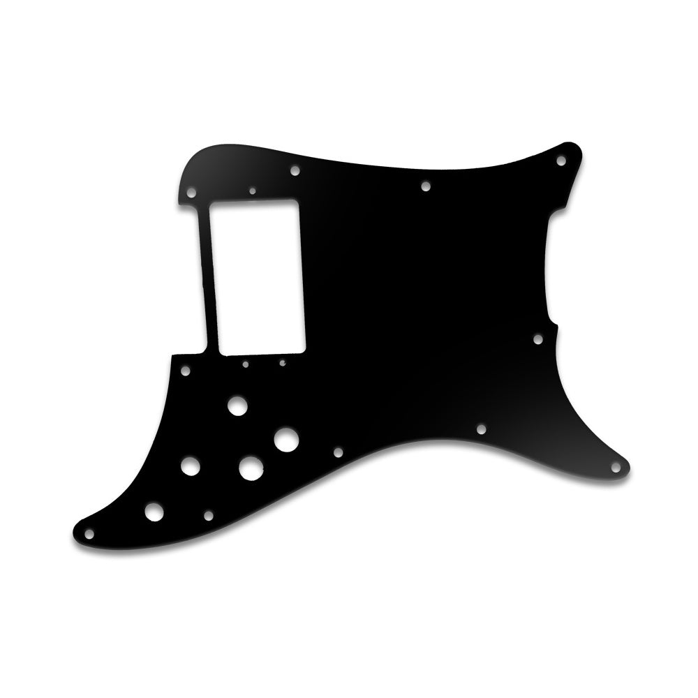 This Fender Lead I replacement pickguard will only fit a genuine USA made 1979 -1982 Fender Lead series guitar. This is how the Fender Lead I series is described - a single specially designed bridge position split humbucker (Seth Lover designed BUT not the same pickup dimensions as used in the Telecaster Deluxe easily noted by the three height adjustment screws). 3 position coil selector switch (single coil, both coils, single coil), 2 position humbucker series-parallel select switch which operates only when both coils are selected (middle position). Master Volume and Tone Control. Made from black PVC material with a matte black top and is .090" / 2.29mm thick, with a bevelled edge.