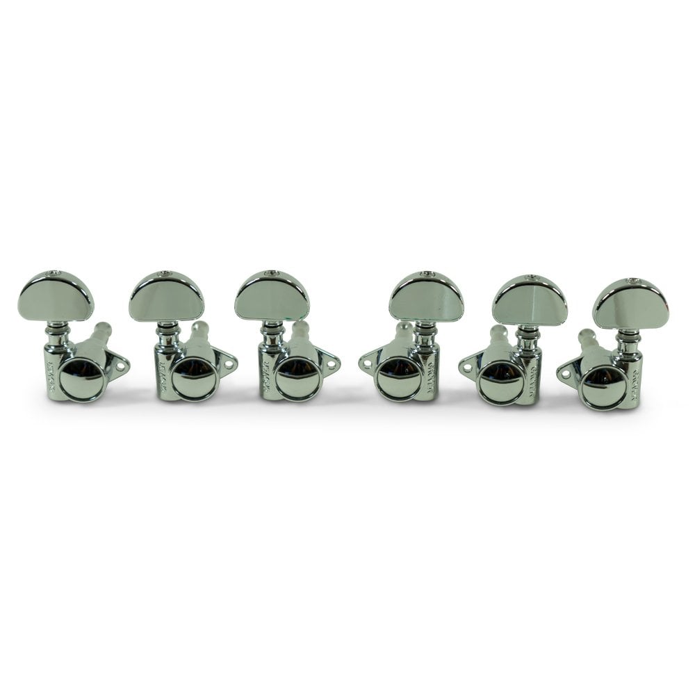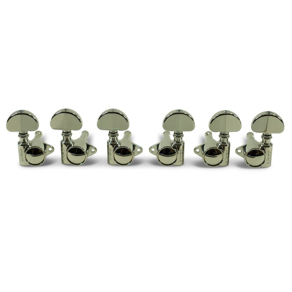 The 102V series is a remake (replica) of the original "Milk Bottle" style Rotomatics first introduced by Grover. With a 18:1 gear ratio, this unique style will make any vintage guitar appear truly original. Offered in the original finishes of nickel, chrome and gold.