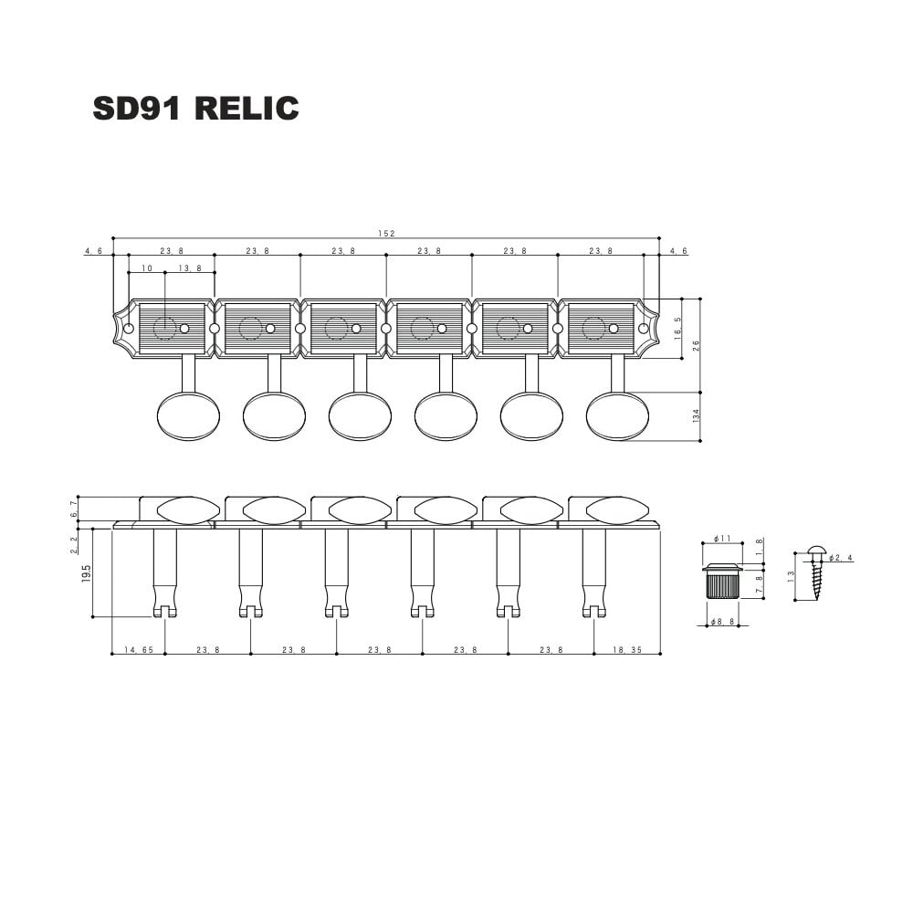 SD91-05M 6 In Line Vintage-style Tuners Aged / Relic Nickel Finish