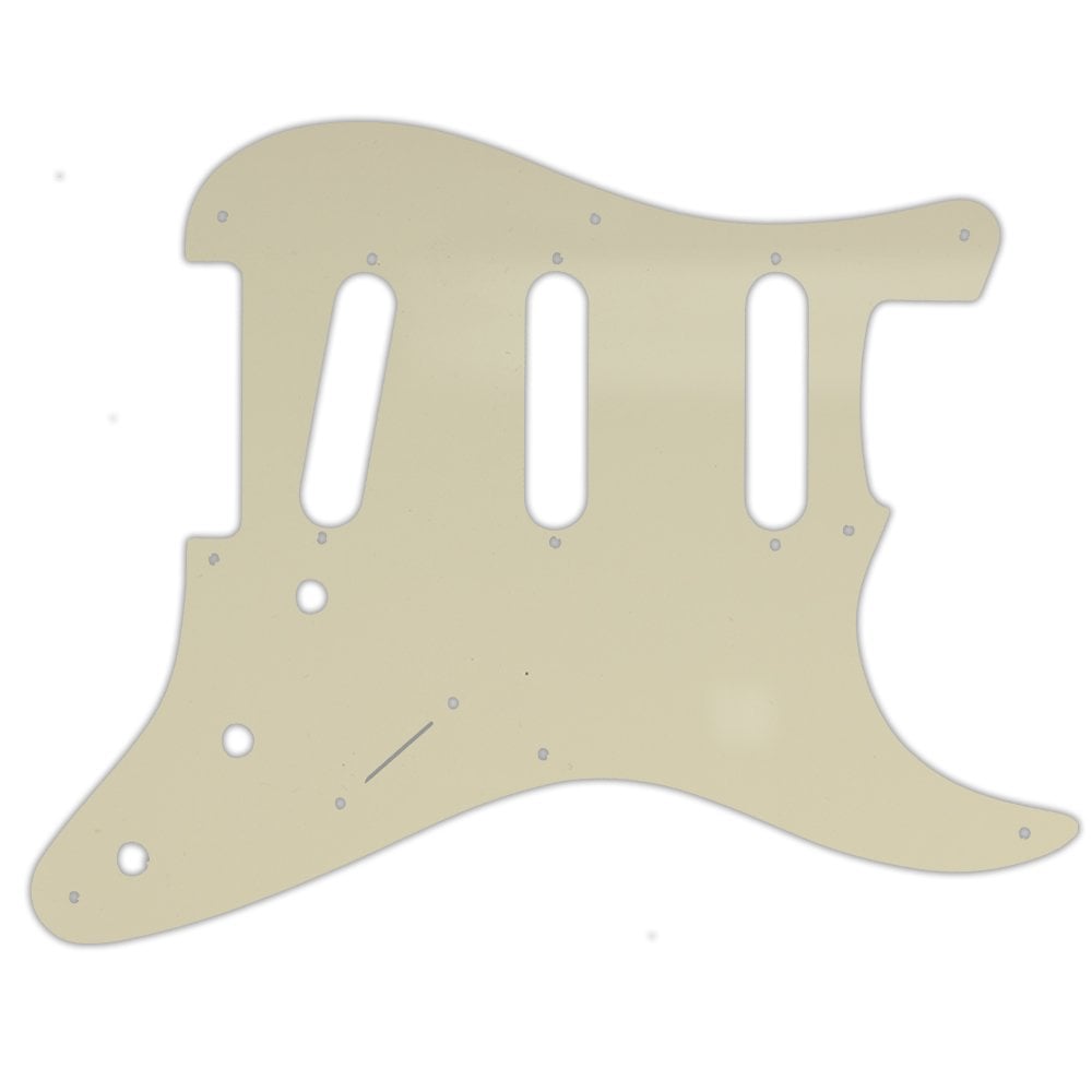 As standard this pickguard comes with 11 outer mounting holes. Vintage 8 hole mounting is available to order via the drop-down menu. If you choose the vintage eight mounting hole pattern the guard will be cut with ALL holes including switch and height adjustment for the pickups countersunk. The 11 hole version which is a standard Fender USA replacement does not have the height adjustments or switch holes countersunk.