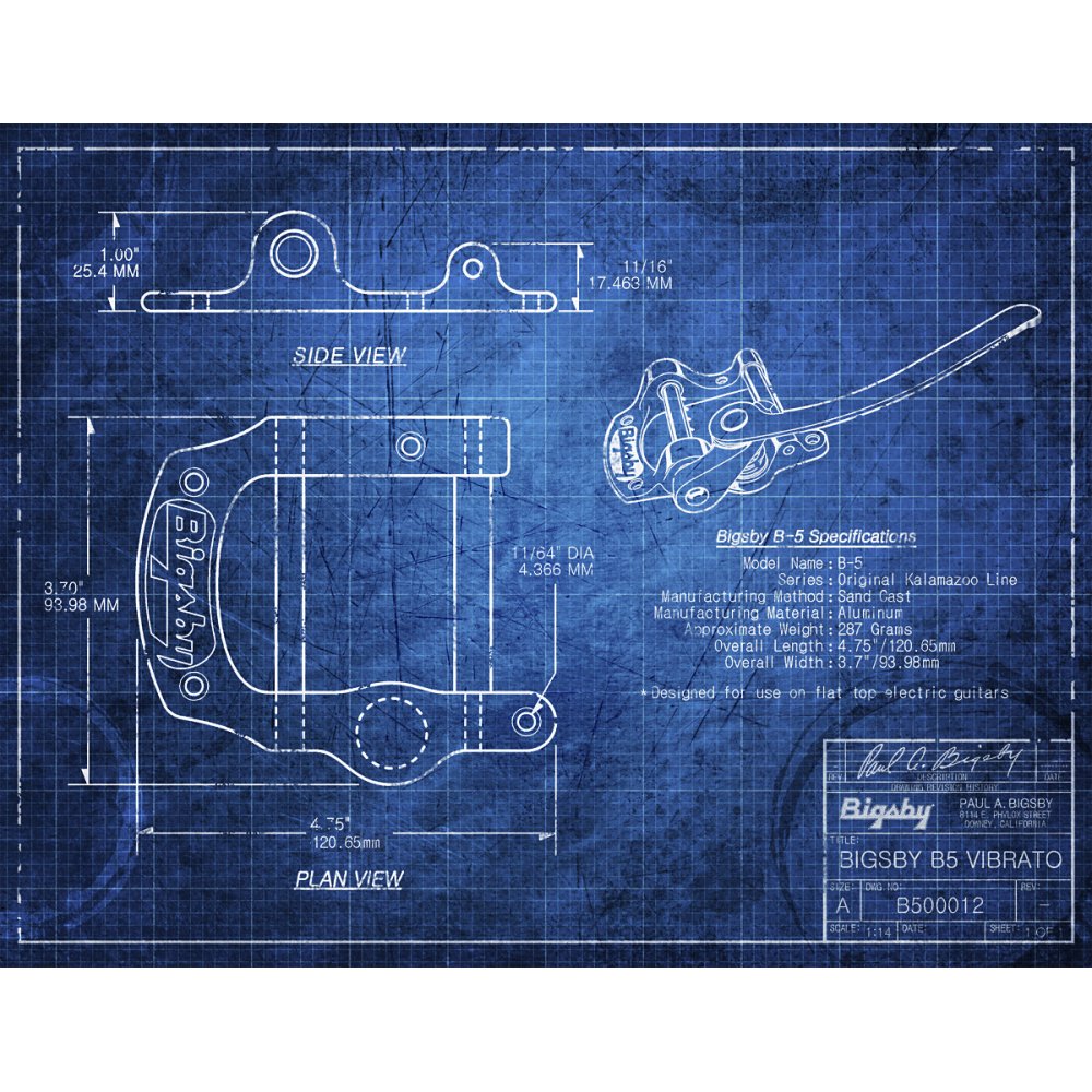 The original and genuine Bigsby vibrato unit, Kalamazoo Series. Originally manufactured in the mid 1940's and to this day, the parts are still manufactured in the U.S.A. and then sent over to Korea for final assembly. Each unit is beautifully packed in genuine Bigsby packaging. The B5 model is used for flat top solid body electric guitars such as SG and Telecaster. It is often referred to as the "Horse Shoe" Bigsby. It comes complete with arm, 4 mounting screws to attach the unit to the front face of the guitar, and a spring to support the vibrato mechanism. It has a cast aluminum frame and nickel string anchor bar. Fitting instructions are included although we recommend a local guitar Luthier to fit it for you if you are unsure about carrying the work out yourself. It does not come with a bridge although you can order it separately.