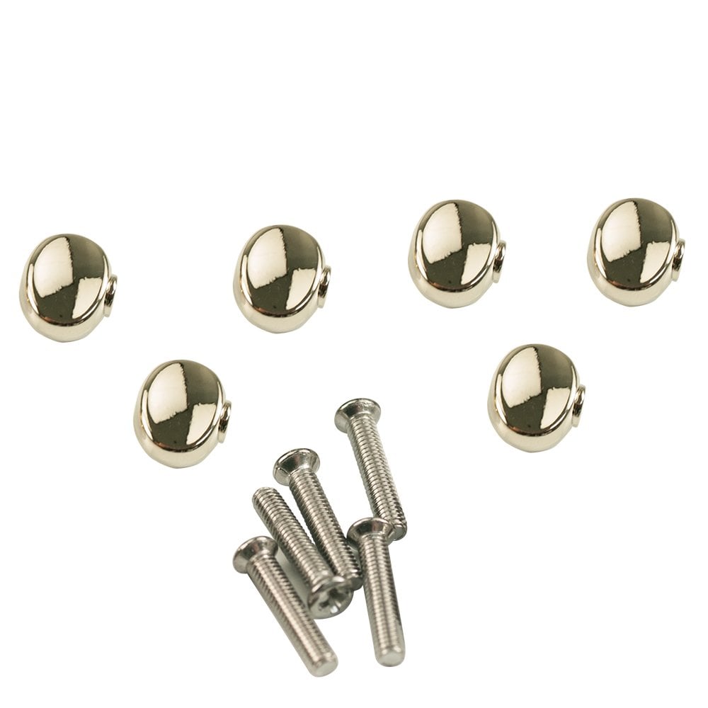 This Kluson replacement button set fits Contemporary Diecast Series tuning machine button shafts with two opposing flat sides and two opposing rounded sides. Available in black, chrome, gold, or nickel. Includes mounting screws and a set of 6 buttons. Will not fit the Kluson Revolution Series or the Non-Contemporary Diecast Series tuning machines.