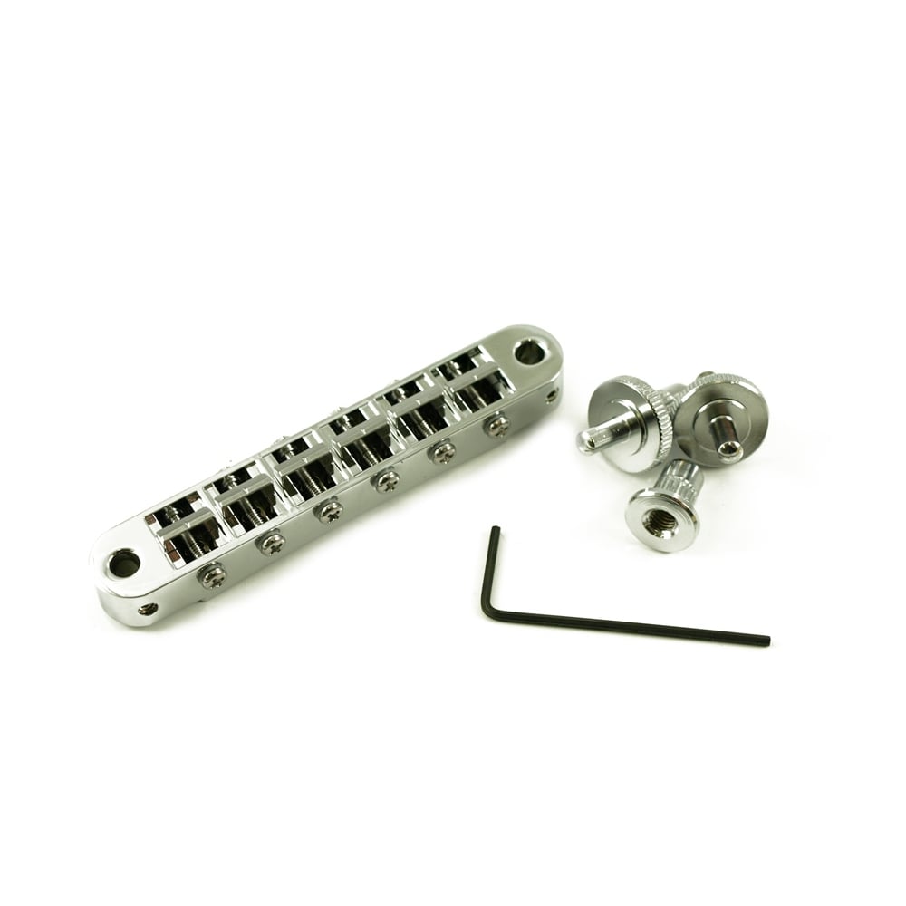 This is the new TonePros locking version of the standard Tuneomatic bridge that secures solidly to your guitar and won't come loose or fall off when the strings are off. This TonePros System II bridge is the same that you will find installed on the top new guitars direct from the factory and will look identical to your stock piece because it's made from the actual OEM bridge used on your guitar, but the new version locks in solid creating perfect intonation and singing sustain. You won't believe the difference, and you will never go back!