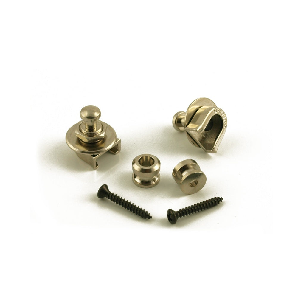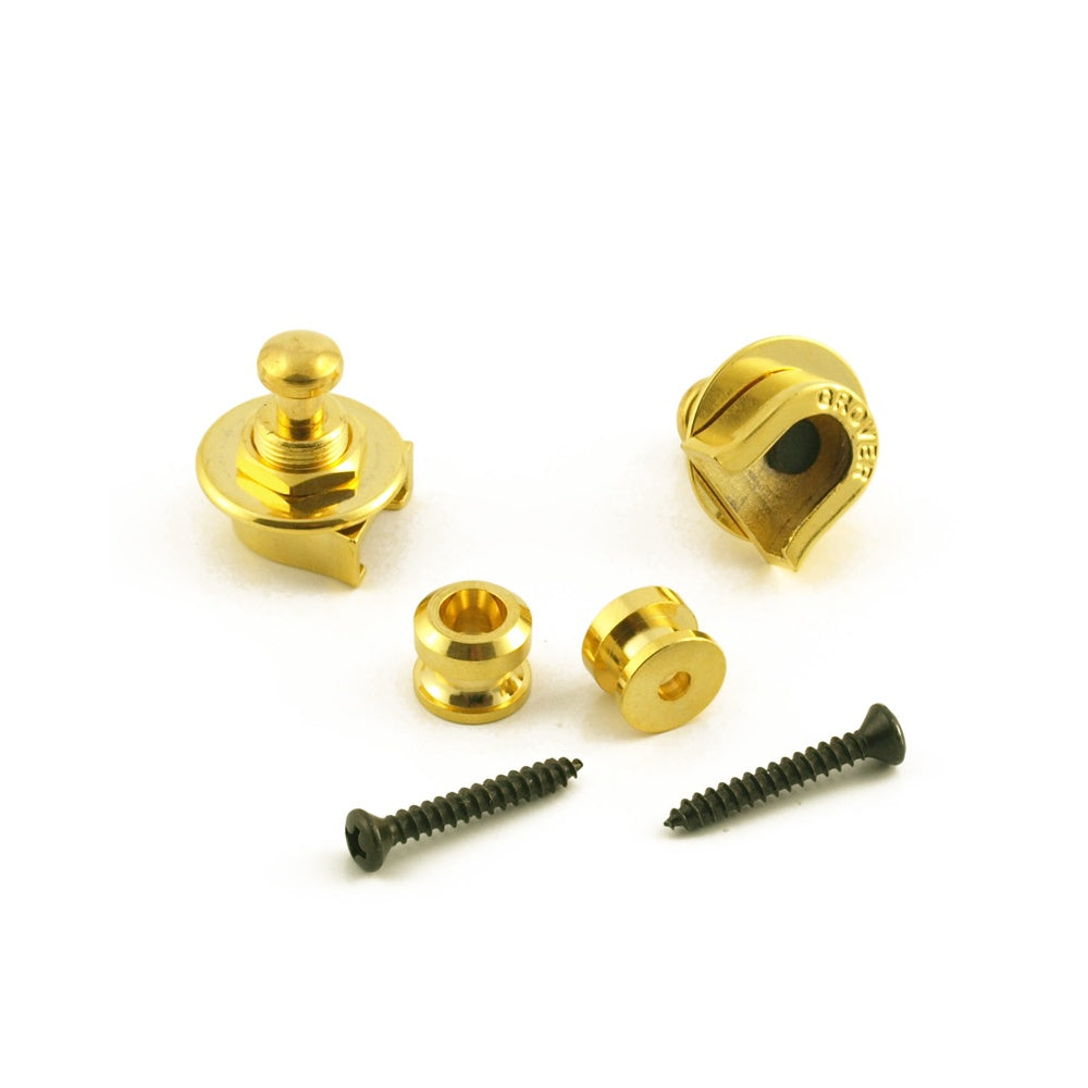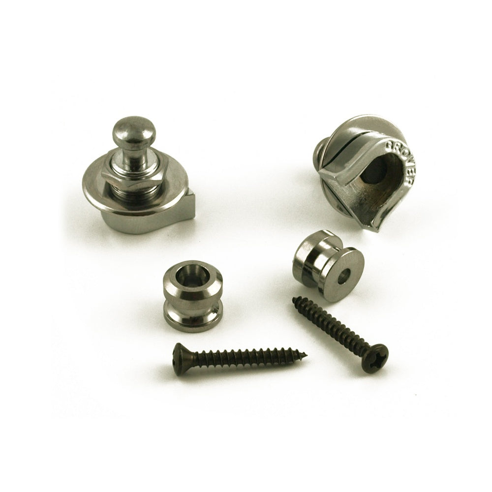 Grover Quik-Release strap locks. Firmly and securely locks the guitar strap to the guitar. The spring-loaded Quik-Release mechanism frees the guitar with a quick pull of the button. Sold in pairs.