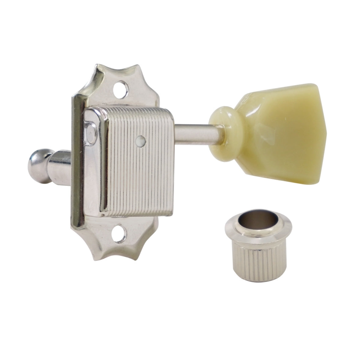 These machine heads feature brass-made string posts and internal washers, true to the specifications used by Gibson until 1975 and Fender until 1966. While most modern string posts and washers are now made from steel, this return to brass enhances vibration transmission, providing a resonance and tonal character reminiscent of vintage sound.