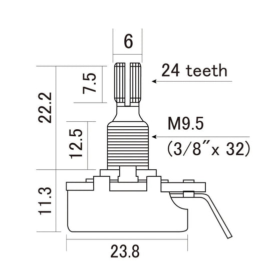 500k Mini Pot Audio Taper 24 Spline Split Shaft Guitar Pot SKU-koodi:Code:MPM24-500-1