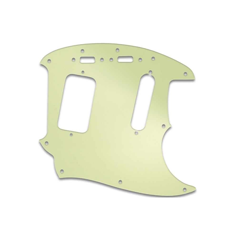 Please note that this pickguard will only fit genuine Fender Jag-Stang. This pickguard is not interchangeable with a Fender Mustang and will not fit any version of the Fender Mustang no matter where the instrument was manufactured. The Fender Jag-Stang is an electric guitar designed by Kurt Cobain, of the band Nirvana, intended as a hybrid of two Fender electric guitars: the Jaguar and the Mustang. If you have the Fender made in Japan or made in Mexico reissue of this guitar, this pickguard will not fit - it only fits the original production from the mid-1990's.