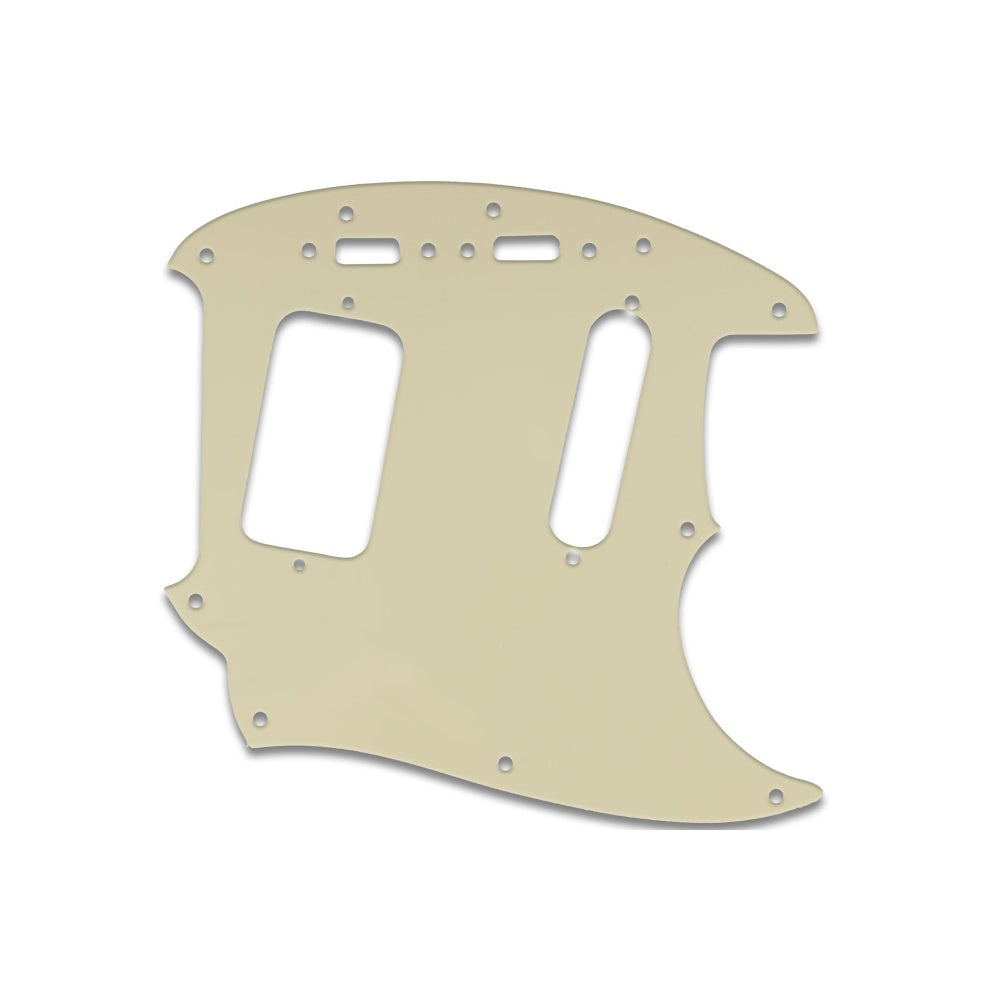 Please note that this pickguard will only fit genuine Fender Jag-Stang. This pickguard is not interchangeable with a Fender Mustang and will not fit any version of the Fender Mustang no matter where the instrument was manufactured. The Fender Jag-Stang is an electric guitar designed by Kurt Cobain, of the band Nirvana, intended as a hybrid of two Fender electric guitars: the Jaguar and the Mustang. If you have the Fender made in Japan or made in Mexico reissue of this guitar, this pickguard will not fit - it only fits the original production from the mid-1990's.