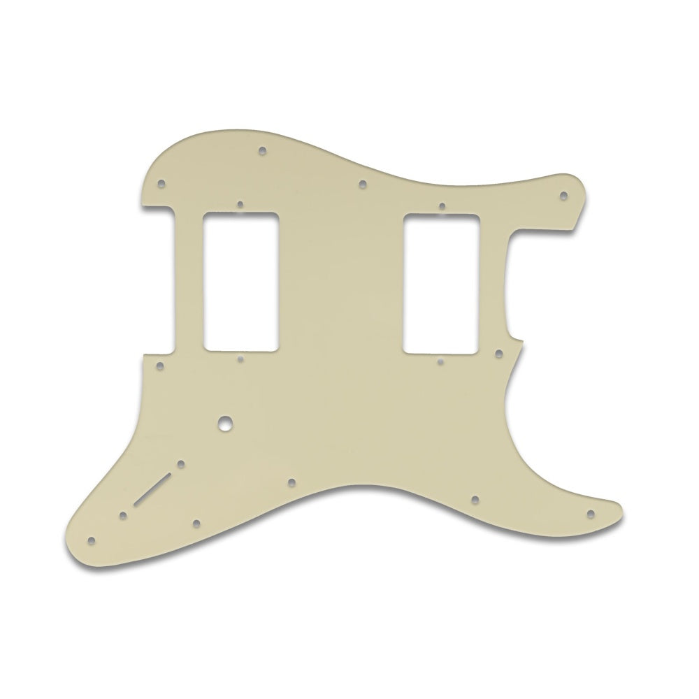 This Jim Root signature pickguard is made specifically for the signature Fender Jim Root Stratocaster. This model features just one volume pot hole and the selector switch is in an alternative position compared to a regular Strat. The Humbucker cutouts are specifically cut to take the EMG 60 and 81 models that are fitted as standard on the Jim Root signature guitar. Many manufacturers may make a similar model but this does not mean every pickguard of that type will be interchangeable. This pickguard is only intended as a replacement for the model instrument named in the title. Made from 3 ply parchment / black / parchment (off-white) plastic material, 2.28mm thick. With 45 degree bevelled edge.