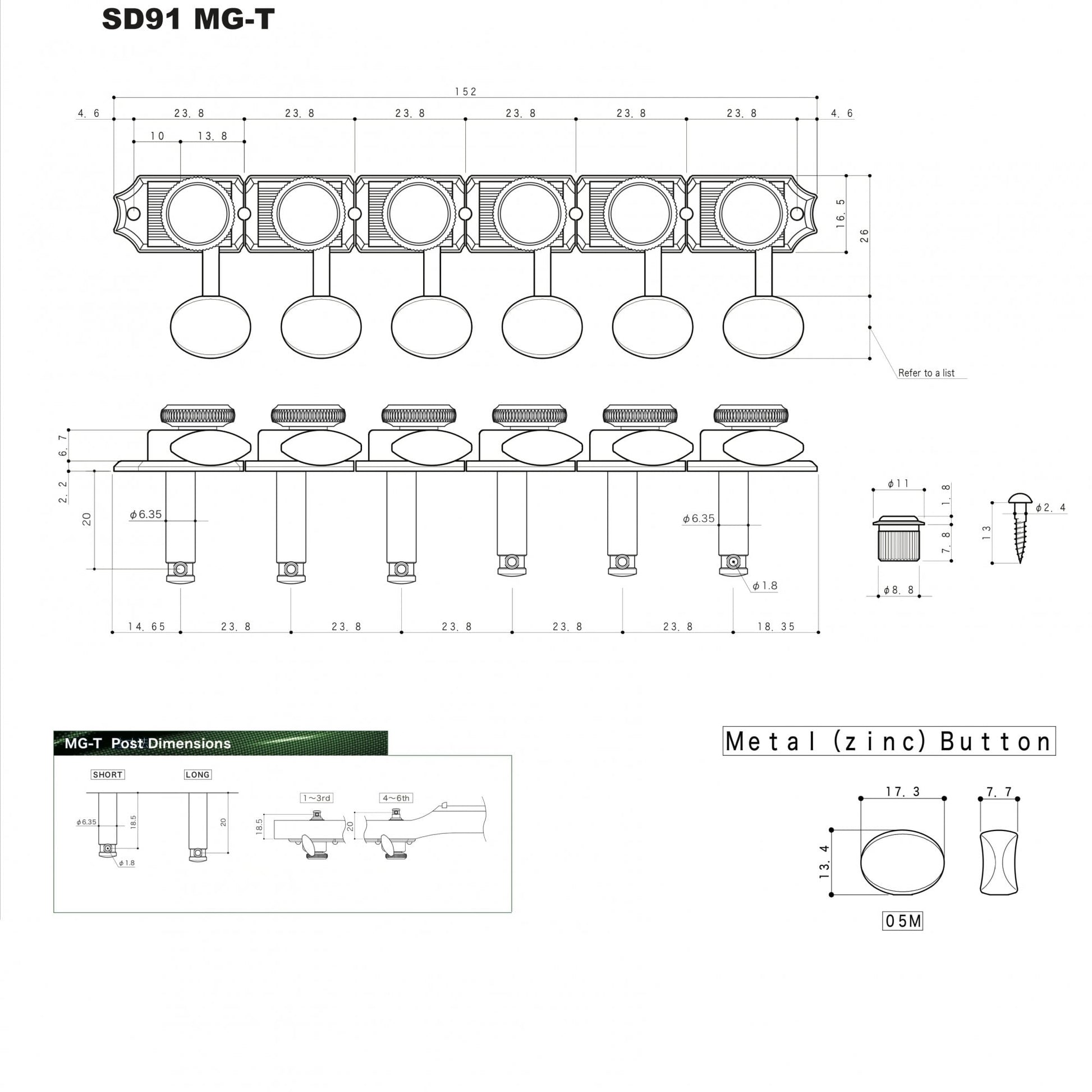 SD91 Vintage Magnum Lock Traditional Tuners 6 In Line 15:1 Gear Ratio