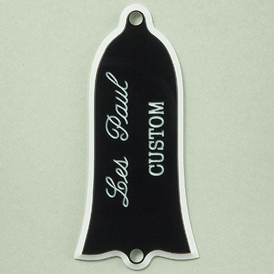 Black on white bell truss rod cover "Les Paul Custom" non-relic / new finish. 52mm centre to centre of the two mounting holes.