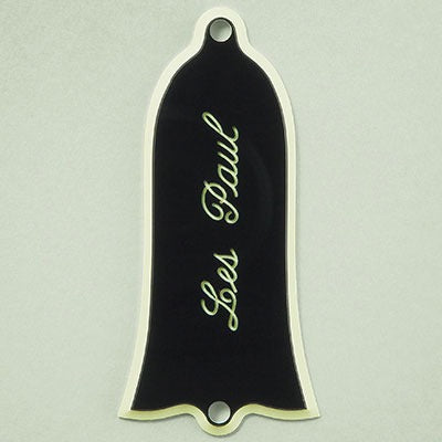 Black on white bell truss rod cover "61 Les Paul" style, relic / aged finish. 52mm centre to centre of the two mounting holes. Complete with roll marks, like the original.