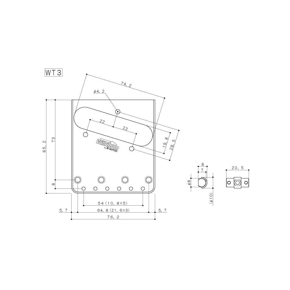 The Gotoh/Wilkinson WT3 Tele bridge is designed to give you the original tone whilst allowing you to play in tune too! The saddles are the same dimensions as the original, as is the thin gauge steel base plate (the base plate has to be steel as this affects the magnetic field of the pickup that it holds - brass, stainless steel or aluminium will not have this authentic effect). It is the design of the saddle that makes this bridge so unique. Unlocking the screw in the centre of the saddle will allow you to adjust it through any degree of rotation that you need to achieve perfect string-to-string intonation. Bridge comes complete with screws and allen keys.