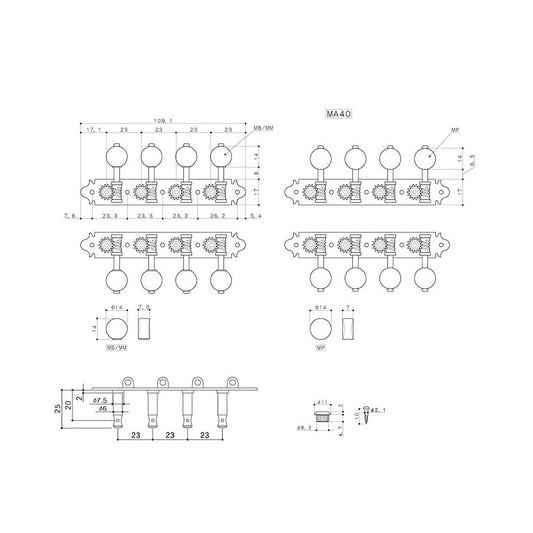 MA40 A-Style Mandolin Machine heads with MM Buttons, 14:1 Gear Ratio SKU:Code:MA40-MMN