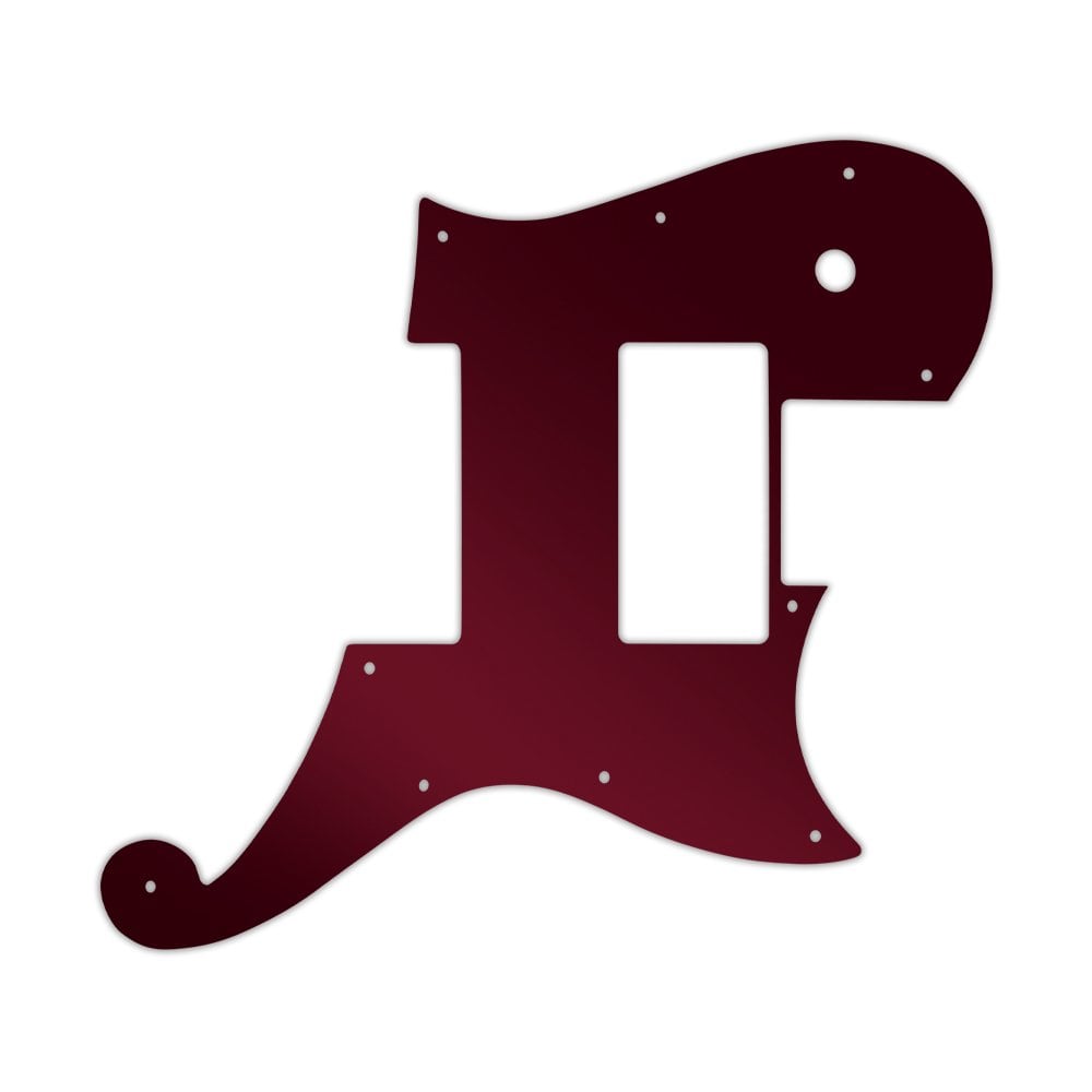 This pickguard is made from red mirror - a clear acrylic material measuring .118" / 2.99mm thick with a 45 degree bevelled edge. The red reflective layer is attached to the underside of the acrylic, preventing it from getting scratched or dented once it is fitted to the instrument.