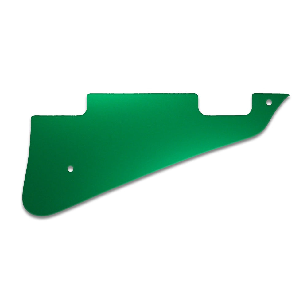 This pickguard is made from green mirror - a clear acrylic material measuring .118" / 2.99mm thick with a 45 degree bevelled edge. The green reflective layer is attached to the underside of the acrylic, preventing it from getting scratched or dented once it is fitted to the instrument.