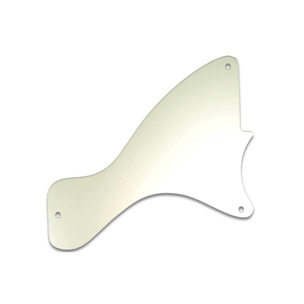 This pickguard is made from silver mirror - a clear acrylic material measuring .118" / 2.99mm thick with a 45 degree bevelled edge. The silver reflective layer is attached to the underside of the acrylic, preventing it from getting scratched or dented once it is fitted to the instrument.