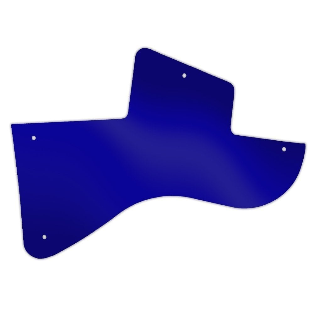 This pickguard is made from blue mirror - a clear acrylic material measuring .118" / 2.99mm thick with a 45 degree bevelled edge. The blue reflective layer is attached to the underside of the acrylic, preventing it from getting scratched or dented once it is fitted to the instrument.