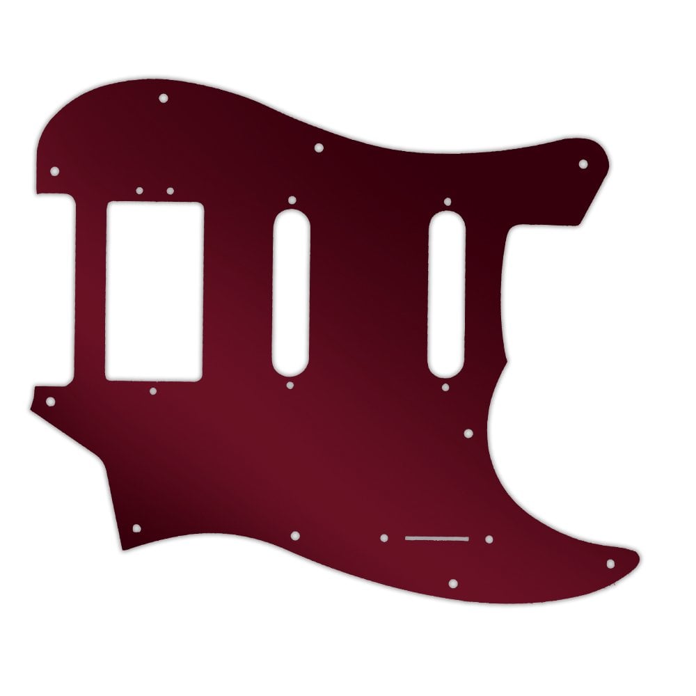This pickguard is made from red mirror - a clear acrylic material measuring .118" / 2.99mm thick with a 45 degree bevelled edge. The red reflective layer is attached to the underside of the acrylic, preventing it from getting scratched or dented once it is fitted to the instrument.