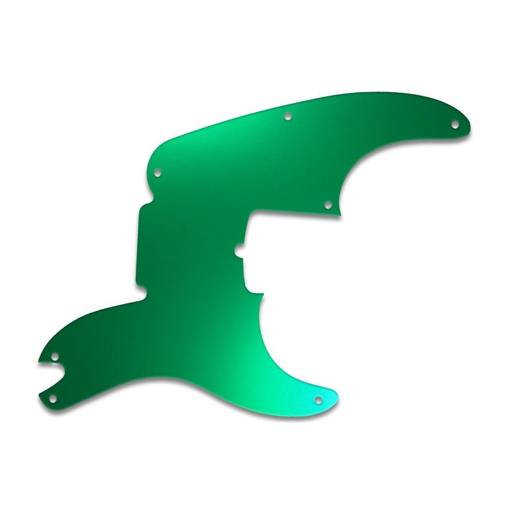 This pickguard is made from green mirror - a clear acrylic material measuring .118" / 2.99mm thick with a 45 degree bevelled edge. The green reflective layer is attached to the underside of the acrylic, preventing it from getting scratched or dented once it is fitted to the instrument.