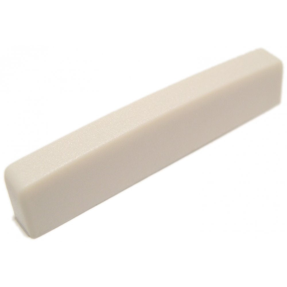 Tusq®, is a man-made ivory substitute from Graphtech that has the off-white appearance of ivory but with many improvements. A lot easier to file and polish than bone, superior sound over Micarta®, and Corian®,. Use this on an acoustic guitar and hear the sound come alive! It's easy to see why a lot of the big named acoustic guitar companies are switching over to Tusq®,